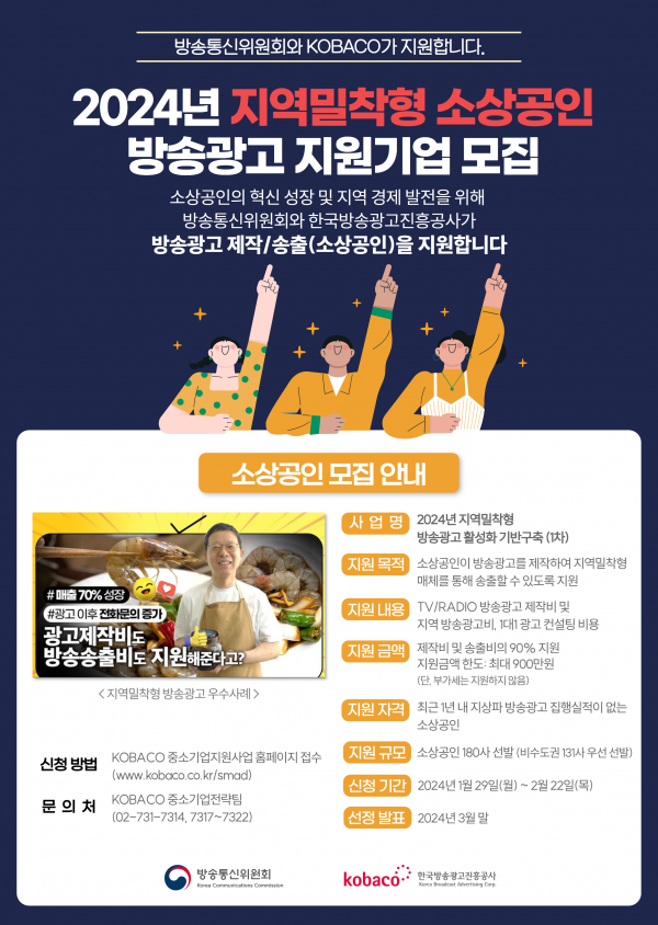 방통위는 2020년부터 정보 부족과 경제적인 부담으로 방송광고에 접근하기 어려운 소상공인이 방송광고를 제작해 지역의 방송매체를 통해 송출할 수 있도록 지원해오고 있다.