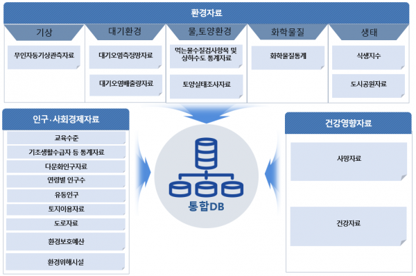‘환경보건 통합감시·평가시스템’은 환경보건 정책의 수립·이행을 지원하기 위해 환경, 건강, 인구, 사회경제 등 총 19개 분야에서 수집한 수백만 건의 정보를 통합·연계·분석해 환경보건 상태 및 수준을 진단하고 감시한다.
