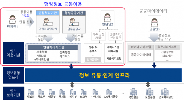 정부는 행정·공공기관간 데이터 칸막이를 허물고 상호간 보유한 정보를 공유해 향후 3년간 1,498종의 민원·공공서비스를 관공서 구비서류 없이 신청토록 개선할 계획이다.