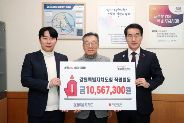 이날 전달식에는 도 직원을 대표해 김명선 행정부지사, 신성호 노조 위원장, 이경희 복지보건국장, 유계식 강원사회복지공동모금회 회장 등이 참석했다.