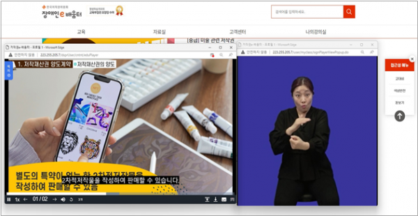 점자파일 고대비 화면, 수어 제공 등 장애유형별 맞춤형 교육콘텐츠 제공 ‘장애인 이-배움터’는 시각장애인과 청각장애인이 불편함이 없이 교육을 받을 수 있는 다양한 기능을 제공한다.