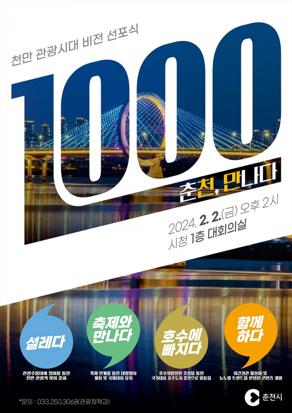 시에 따르면 2일 오후 2시 시청 1층 대회의실에서 천만 관광시대 ‘춘천, 만나다.