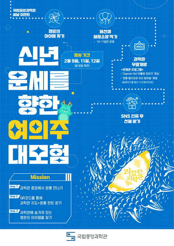 [AANEWS] 국립중앙과학관은 설 연휴기간동안 전관 무료 개방 및 관람객 참여 이벤트 ‘여의주 대모험’을 진행한다.
