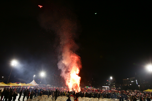 한 해 동안의 액운을 방지하고 건강과 안녕을 기원하는 달집이 시청광장에서 타오른다.