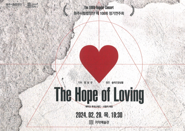원주시 관계자는 “새로운 생명이 싹트는 봄을 맞아 삶에서 가장 중요한 ‘사랑’을 그려내는 The Hope of Loving을 원주시립합창단과 솔리드앙상블의 하모니로 즐겨주시길 바란다”고 전했다.