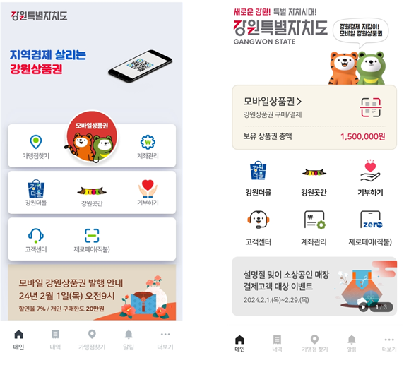 [AANEWS] 강원특별자치도는 모바일 강원상품권 앱의 메인화면을 사용자의 편의성을 고려해 개편했다.