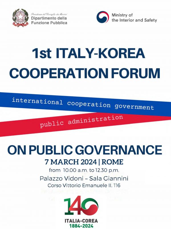 3월 7일 오전 10시 협력단은 이탈리아 공공행정부와 함께 한국과 이탈리아 수교 140주년을 기념하는‘한-이탈리아 공공행정 협력포럼’을 공동으로 개최했다.