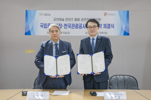 [AANEWS] 한국관광공사는 15일 국립극장 대회의실에서 우수한 문화예술 콘텐츠를 바탕으로 공연관광을 활성화하기 위해 국립중앙극장과 업무협약을 체결했다.