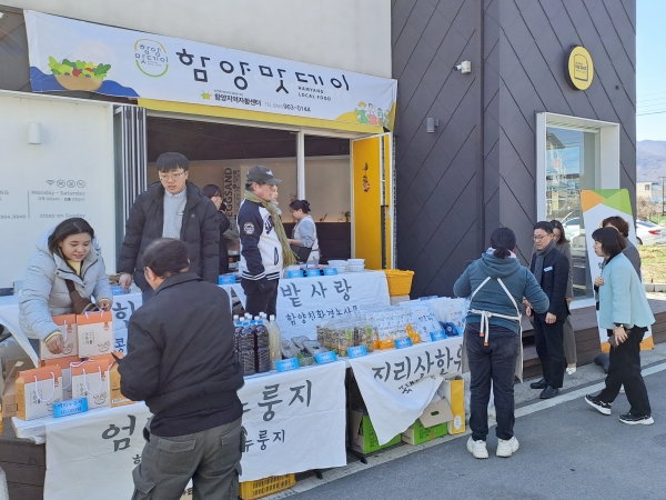 [AANEWS] 함양지역자활센터는 지난 3월 21일 함양읍 에그샌드앤커피 앞에서 ‘함양맛데이’를 운영했다.