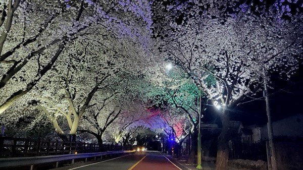 야간에는 형형색색의 경관조명이 벚꽃터널과 어우러져 다채로운 분위기를 조성해 낮과는 달리 컬러풀한 벚꽃을 즐길 수 있다.