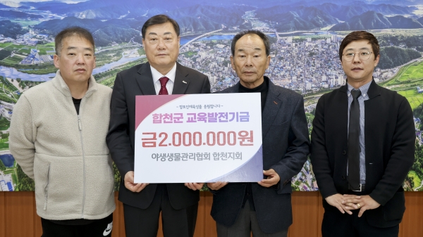 [AANEWS] 야생생물관리협회 합천지회는 26일 합천군교육발전위원회를 방문해 지역인재육성을 위해 써달라며 교육발전기금 200만원을 기탁했다.