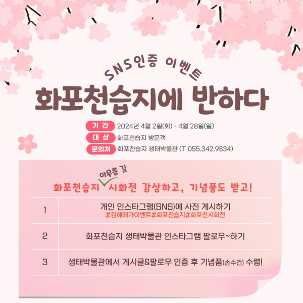 개인 SNS에 화포천습지 사진을 게시하고 생태박물관 인스타그램을 팔로우하면 박물관 2층에서 기념품을 수령할 수 있다.
