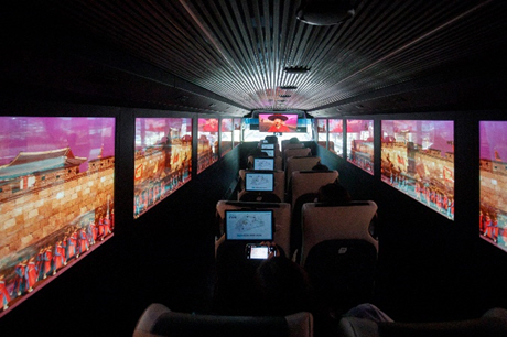 탑승객은 XR버스 양쪽 창문의 투명 디스플레이에서 확장현실 기술을 적용한 투명 영상을 통해 1795년 당시 정조의 을묘원행을 함께할 수 있다.