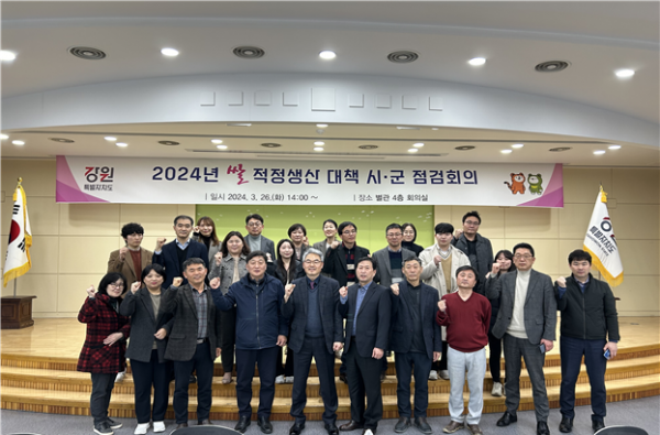 [AANEWS] 강원특별자치도는 3월 26일 도청 별관 대회의실에서 쌀 적정생산 대책 추진실적 공유 및 도·시군 간 소통체계를 강화하고 ‘쌀 적정생산 대책’의 성공적인 사업 추진을 위한 대응 및 개선 방안 논의를 위해 점검회의를 개최했다.