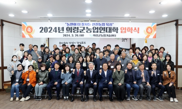 [AANEWS] 의령군은 26일 교육생과 내외빈 등 70여명이 참석한 가운데 2024년 의령군농업인대학 입학식을 개최했다.
