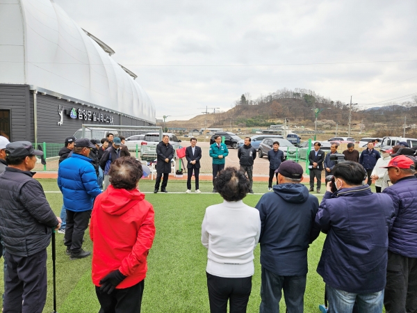 [AANEWS] 진병영 함양군수는 3월 27일 ‘제63회 경상남도민체육대회’에 출전을 앞두고 훈련에 열중인 선수단을 격려하기 위해 종목별 훈련장을 찾았다.
