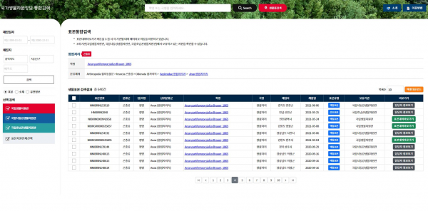 국가생물자원정보 통합검색에서는 동물, 식물 등의 서식지와 형태 정보를 알 수 있는 표본 291만 건과 생물종 판별에 유용한 특정 유전정보 3만 건을 바로 내려받아 이용할 수 있다.
