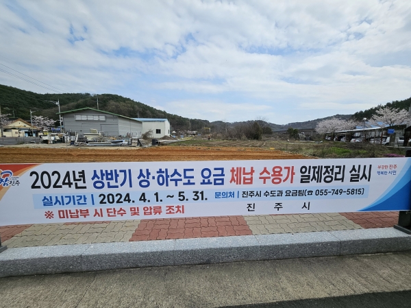 [AANEWS] 진주시는 깨끗한 수돗물 공급 재원확보 및 공기업 재정건전성을 위해 ‘2024년 상반기 상·하수도 요금 체납 수용가 일제정리’를 실시한다.