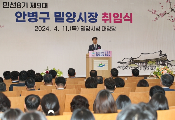 이날 안 시장은 첫 일정으로 충혼탑 참배 후 시청 대강당에서 열린 민선8기 제9대 밀양시장 취임식에 참석했다.
