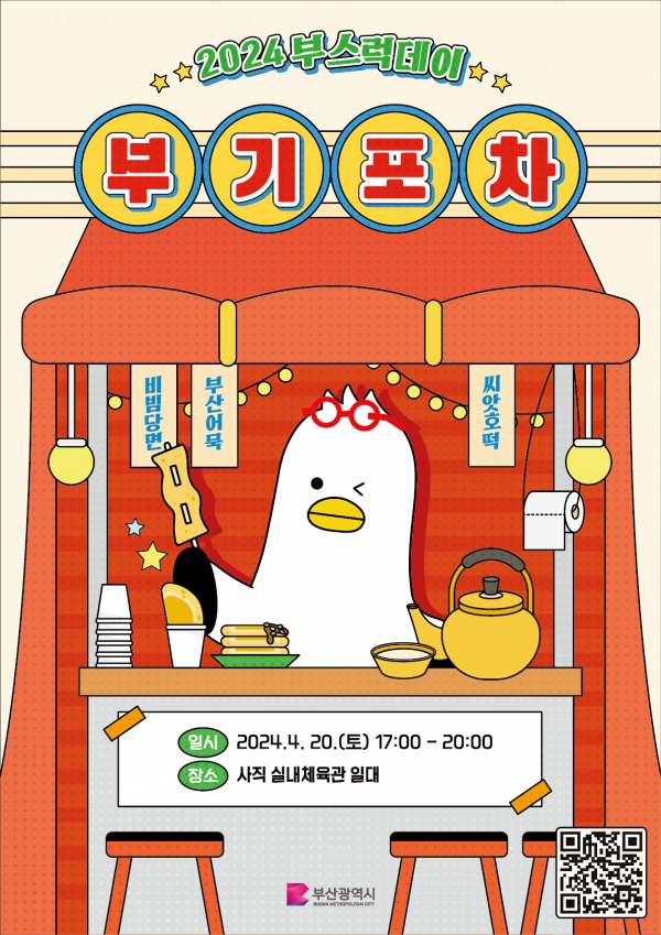 이번 행사는 부산을 대표하는 음식들을 맛볼 수 있는 '포장마차'를 주제로 사전행사 ▲부기슐랭과 무대행사 ▲부기 보러 왔어요 ▲부기쇼 등 다채로운 프로그램으로 준비됐다.