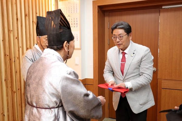 망장은 제관으로 추천된 내용을 기록한 임명장으로 이날 숭선전 참봉이 홍 시장에게 전달했다.