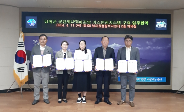[AANEWS] 남해군은 11일 남해읍행정복지센터 회의실에서 ‘군단위 LPG배관망 가스안전시스템 구축’ 업무협약을 체결했다.