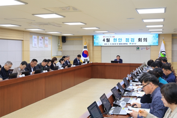 [AANEWS] 함안군은 15일 오전 군청 별관 3층 중회의실에서 조근제 함안군수 주재로 4월 현안점검회의를 개최했다.