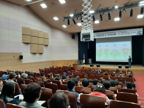 2부 학술대회 본 행사는 사찰문화 중 사찰건축에 대한 이해를 주제로 한 양산시 해설사의 발표와 우리신화에 대해 현재적 의미를 가미한 해설활동으로의 접목을 주제로 한 거창군 해설사의 발표에 이어 질문과 보충 설명의 시간을 가지고 앞으로 2년간 추진 될 학술대회 주제 및 진행 방식에 대한 공지 순으로 행사를 진행했다.