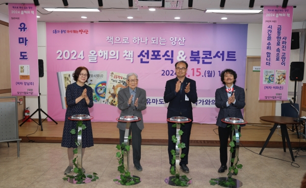 올해로 3회째를 맞는 양산시 ‘올해의 책’ 독서운동은 지역에 대한 시민의 관심을 환기해 책으로 하나 되는 양산을 만들고자 지역 관련 도서 또는 지역 작가의 책을 선정해 다양한 독서문화프로그램을 운영하는 사업으로 2024년에는 강남주 작가의 ‘유마도’, 이하은 작가의 ‘시간을 수리한다’, ‘금동항로 속으로 사라진 고양이’가 선정됐다.