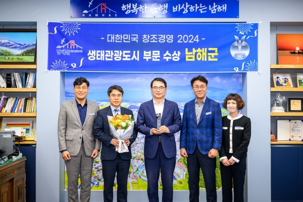 [AANEWS] 남해군이 중앙일보S가 주최하고 기획재정부·과학기술정보통신부·행정안전부 가 후원하는 ‘대한민국 창조경영 2024’에서 ‘생태관광도시’ 부문을 수상했다.
