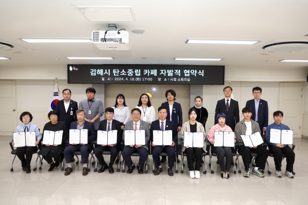 시는 친환경 개인 다회용컵 사용 활성화를 위한 시범사업으로 ‘김해시 탄소중립 카페 자발적 협약식’을 추진했다.