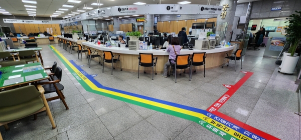 민원 편의 서비스의 일환으로 바닥에는 형형색색의 민원 안내 유도선이 설치해 민원인이 원하는 업무창구까지 쉽게 찾아갈 수 있게 됐고 노후화된 민원데스크를 전면 교체해 밝고 쾌적한 환경을 조성했다.