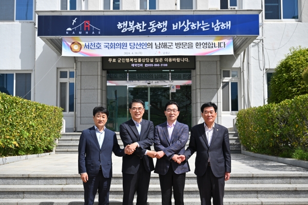 장충남 군수는 “남해군 집행부와 군의회, 도의원, 국회의원이 하나로 똘똘 뭉쳐 협치의 모범을 남해에서부터 만들어가길 희망한다”며 “우주항공청이라는 국가적 정책 사업이 남해의 지역경제 활성화에도 직접적으로 기여할 것으로 기대되는 만큼 당선인께서 의정활동에 매진하실 수 있도록 지역현안 사업에 잘 협조해 나가겠다”고 밝혔다.