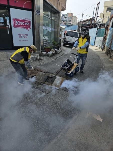 유충구제 작업은 방역기동반 2개 조(7명)를 편성해 정화조, 하수구, 빗물받이 등 3,680개소를 중심으로 구제 약품을 집중 살포하는 방식으로 진행되며 필요시 연막 소독을 병행해 실시한다.