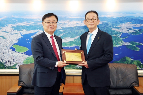 [AANEWS] 홍남표 창원특례시장은 17일 시청 접견실에서 이웃사랑 나눔을 실천한 재일교포 송옥식 씨에게 감사패를 수여했다.