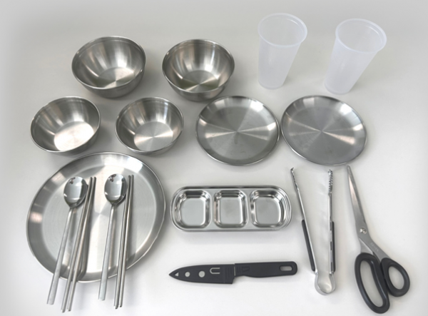 대여 서비스에 쓰이는 다회용기는 스테인레스 소재의 그릇과 접시, 수저 및 다회용 컵 등 15종으로 구성되어 일회용품 없이 편리하게 탄소중립 야영을 즐길 수 있다.