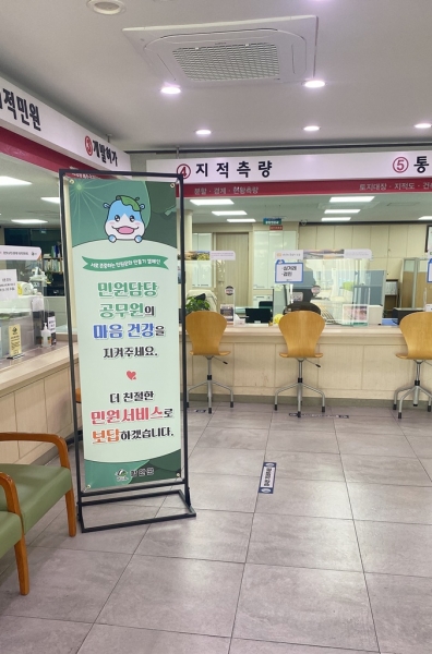 캠페인 안내문은 ‘민원담당 공무원의 마음 건강을 지켜주세요. 더 친절한 민원서비스로 보답한다’ ‘존중과 배려가 더 나은 민원서비스를 만듭니다’ 등의 문구를 넣어 민원인과 민원담당 공무원이 상호 존중의 공감대를 형성할 수 있도록 했다.