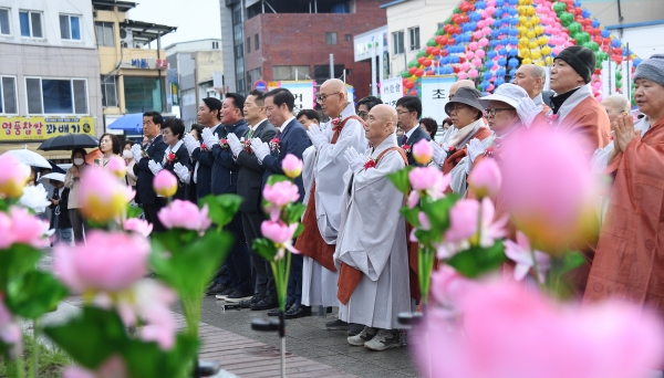 거창불교사암연합회장을 맡고 있는 거창포교당 해각스님은 개회사를 통해 “오늘 밝힌 5천여 개의 연등처럼 부처님의 자비와 광명이 모두의 마음을 밝혀 상생의 가치가 우선하는 부처님 세상이 되길 기원한다”고 말했다.