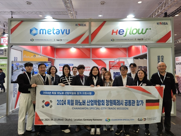 [AANEWS] 창원특례시가 지난 22일부터 26일까지 지역 혁신기업 4개 사와 함께 참가한 독일 ‘HANNOVER MESSE 2024’에서 약 9천만 불 규모의 수출 상담 및 계약 성과를 거둬 세계시장에서 창원특례시 선도기업의 기술력을 널리 알렸다.