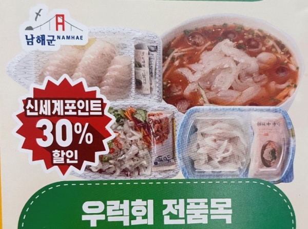 6일간 진행되는 ‘이마트와 함께하는 남해군 수산물 소비 판촉전’에서는 우럭회 1팩이 신세계포인트 적립회원 대상으로 30% 할인된 가격인 19,586 원으로 판매된다.
