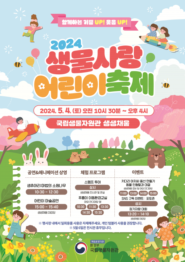 [AANEWS] 환경부 소속 국립생물자원관은 어린이날과 생물다양성의 달을 맞아 5월 4일 관내에서 ‘2024 생물 사랑 어린이 축제’를 개최한다.