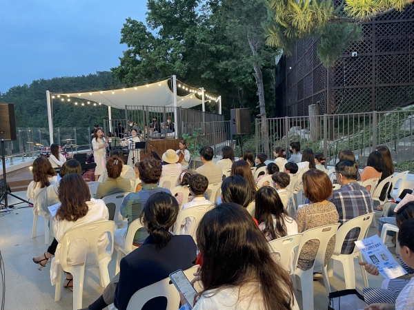시는 진양호 노을이 지는 저녁 시간 한눈에 보이는 아름다운 전망 속에서 목관 앙상블 음악 연주를 들으며 힐링할 수 있는 시간을 마련했다.