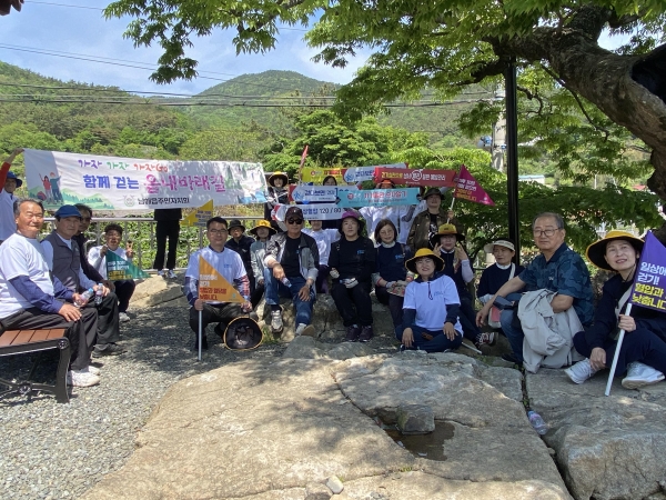 주민자치회 회원들 30여명은 남해읍행정복지센터에서 출발해 남산과 봉전수국길을 거쳐 오동수원지로 이어지는 길을 걸었다.
