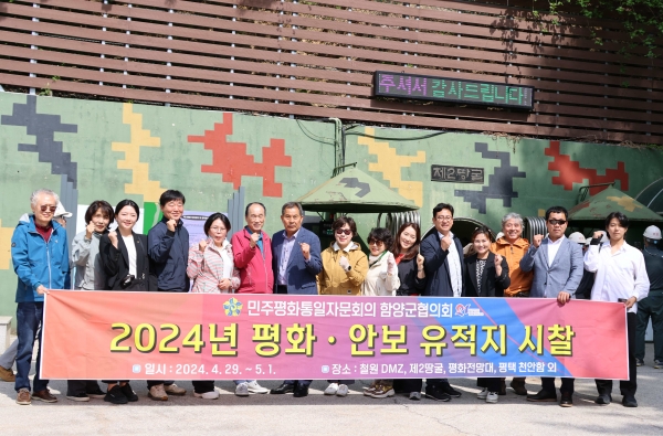 [AANEWS] 민주평화통일자문회의 함양군협의회는 자문위원을 대상으로 4월 29일부터 5월 1일까지 3일간 철원 비무장지대, 제2땅굴, 평화전망대, 서해 수호관, 천안함 등 평화·안보 유적지 시찰을 다녀왔다.