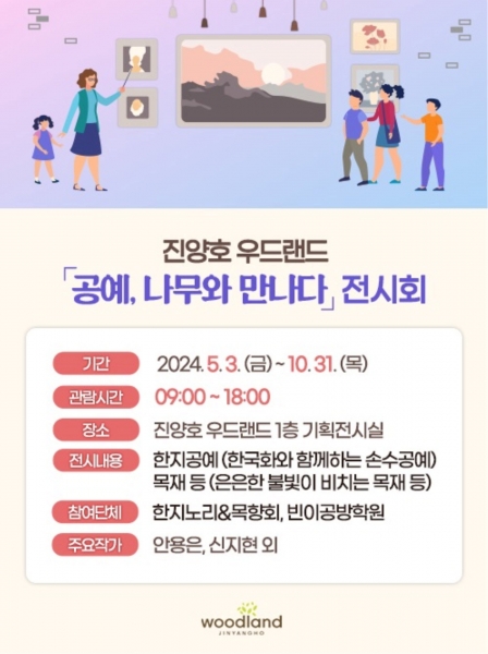 시 관계자는 “진양호 우드랜드에서 특성화된 작가들의 작품을 감상하고 다양한 체험프로그램도 참여할 수 있다 온 가족이 즐기기 좋은 전시로 많은 시민이 방문해 함께 즐길 수 있기를 바란다”고 말했다.