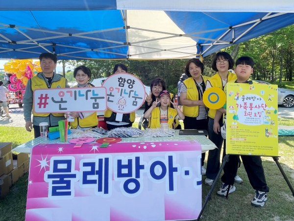 [AANEWS] 함양군물레방아가족봉사단은 어린이날을 맞아 지난 4일 상림공원 연지광장에서 열린 어린이잔치한마당에 참여해 관내 어린이들을 대상으로 탄소중립 실천 퀴즈 프로그램을 운영하며 손수건 나눔 활동을 펼쳤다.