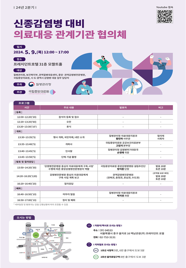 [AANEWS] 질병관리청은 5월 9일 ’24년 ‘신종감염병 대비 의료대응 관계기관 협의체’를 개최했다.