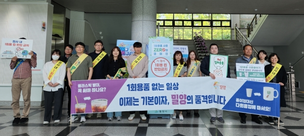 [아시아월드뉴스] 밀양시는 매월 10일을 1회용품 ZERO-day로 지정하고 10일 시 청사에서 1회용품 사용 줄이기 생활화를 위한 캠페인을 실시했다.