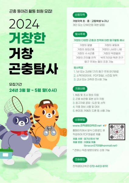 [아시아월드뉴스] 거창천적생태과학관에서는 지역 내 초·중·고등학생들을 대상으로 ‘거창한 거창 곤충탐사’ 회원을 이달 말까지 모집한다.