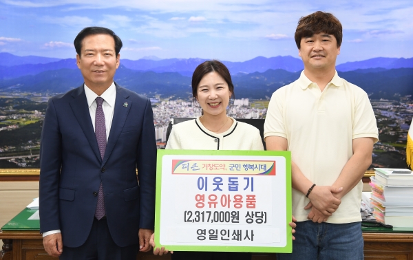 영일인쇄사 장재홍 대표를 대신해 기탁식에 참여한 장선희, 공석민 부부는 “영유아용품 가게를 정리하면서 어려운 가정의 아이들에게 작은 도움이 되면 좋겠다는 마음으로 참여하게 됐다”며 “앞으로도 지역의 어려운 이웃들에게 관심을 가지고 나누는 삶을 실천하고 싶다”고 기탁의 소감을 말했다.